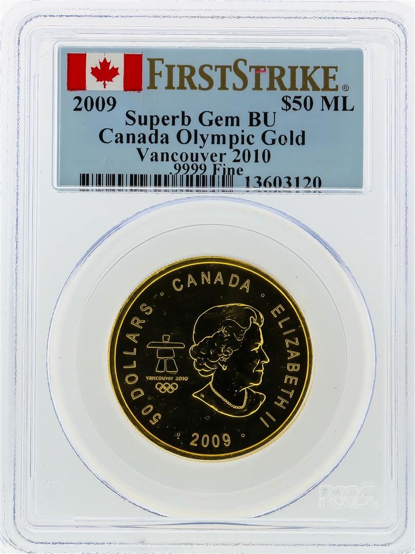 One 2009 $50 Maple Leaf Gold Coin Olympic PCGS Superb Gem BU. PCGS Graded.