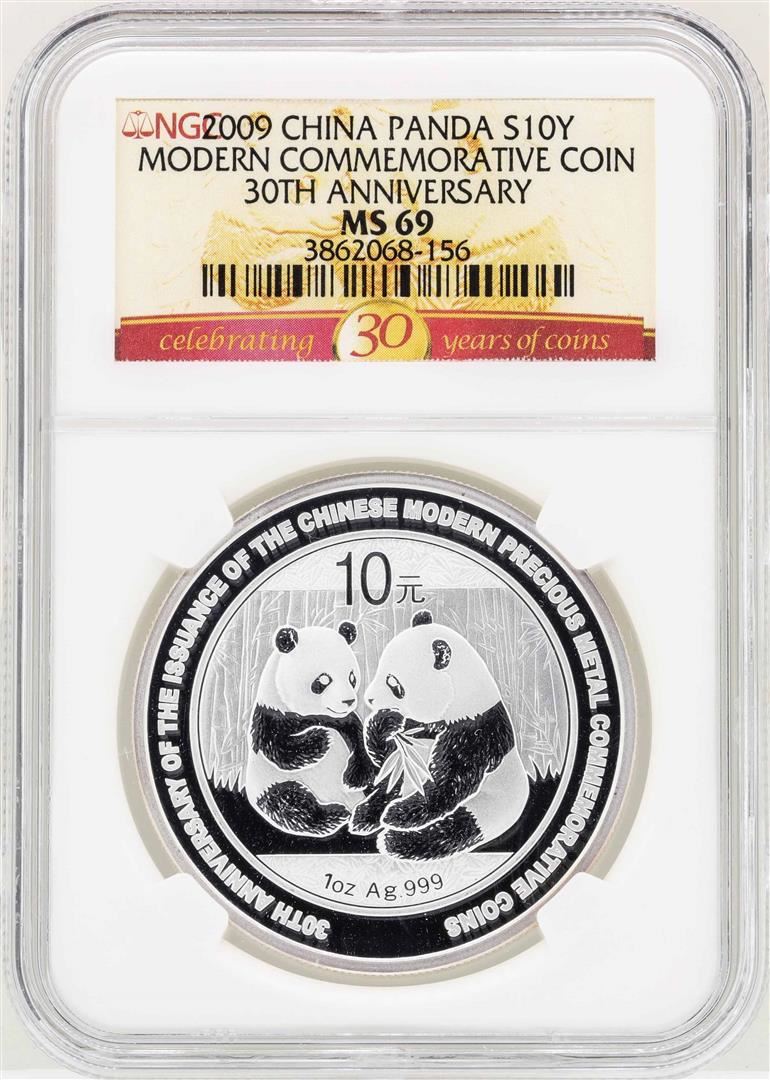 One 2009 China 10 Yuan Silver Panda Commemorative Coin NGC MS69. NGC Certified.
