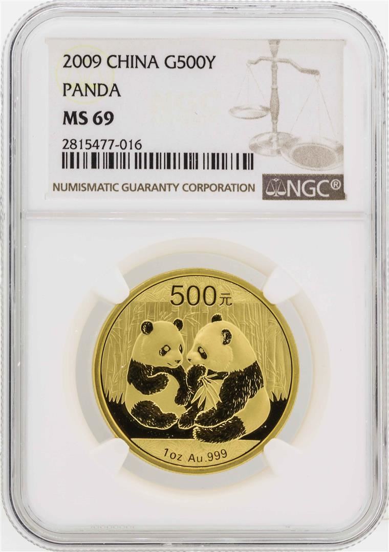 One 2009 China 500 Yuan Panda Gold Coin NGC MS69. NGC Certified.