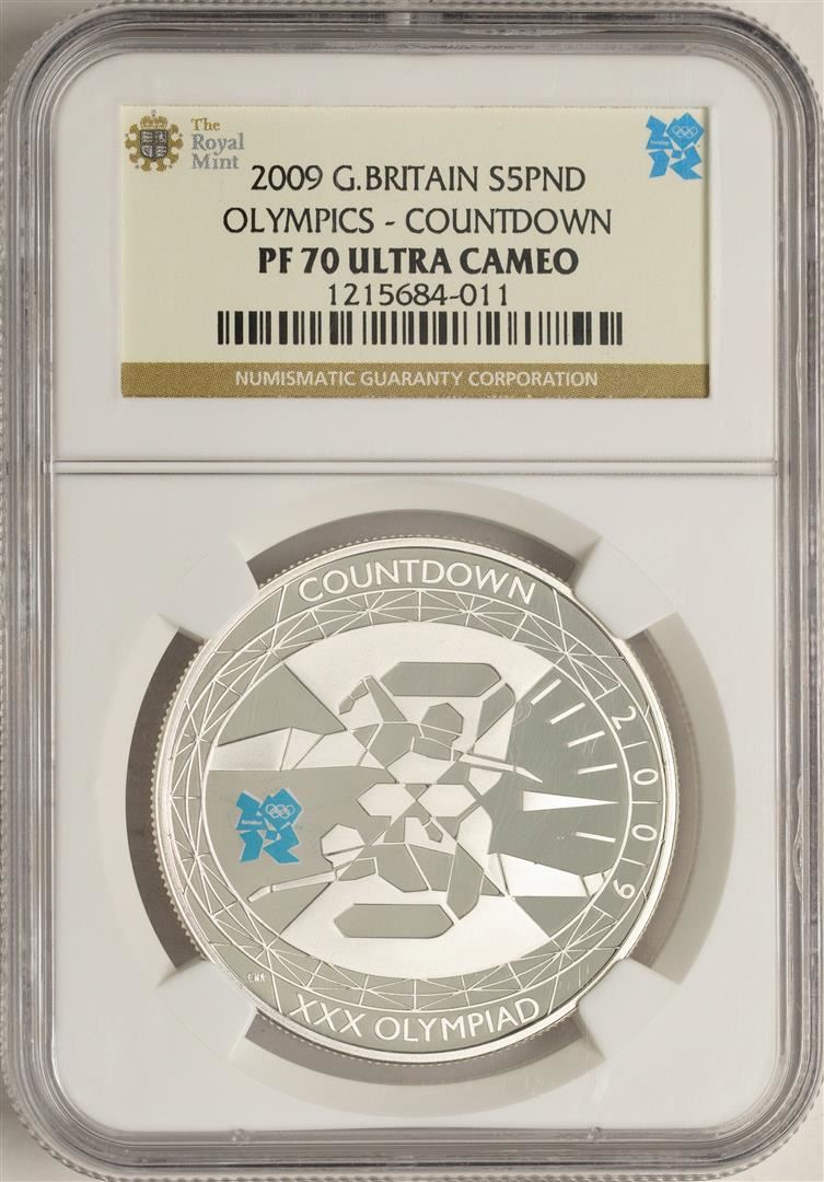 One 2009 Great Britain 5 Pounds Olympics Commemorative Silver Coin NGC PF70 Ultra Cameo. NGC Certified.