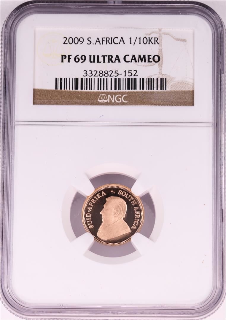 One 2009 South Africa 1/10 Krugerrand Gold Coin NGC PF69 Ultra Cameo.