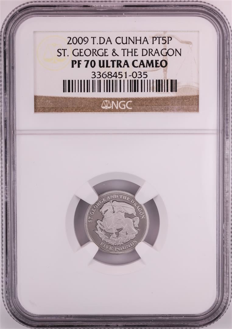 One 2009 T.DA Cunha 1/10 oz St. George & Dragon Platinum Coin NGC PF70 Ultra Cameo. NGC Certified.