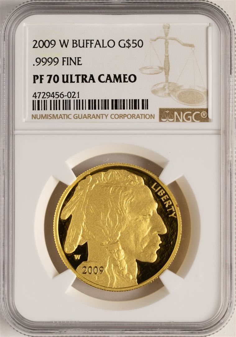 One 2009-W $50 Proof American Gold Buffalo Coin NGC PF70 Ultra Cameo. NGC Certified.