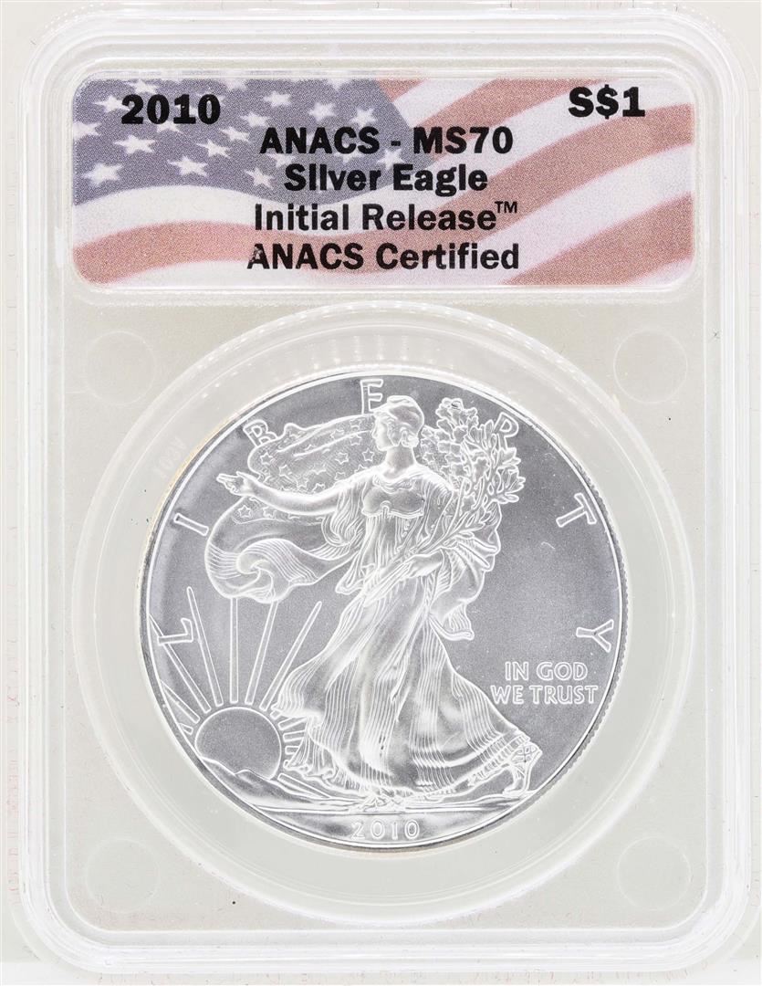 One 2010 $1 American Silver Eagle Coin ANACS MS70. ANACS Certified.