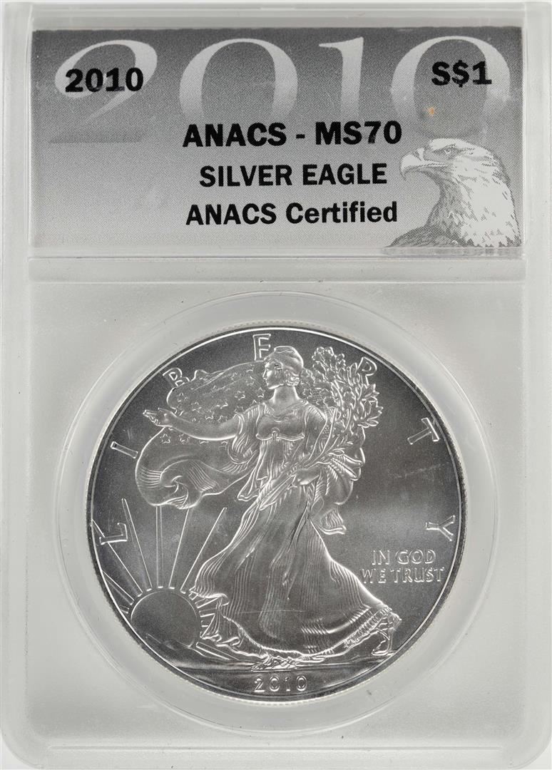One 2010 $1 American Silver Eagle Coin ANACS MS70. ANACS Certified.
