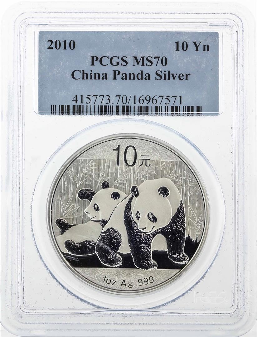 One 2010 10 Yuan China Silver Panda Coin PCGS MS70. PCGS Graded.