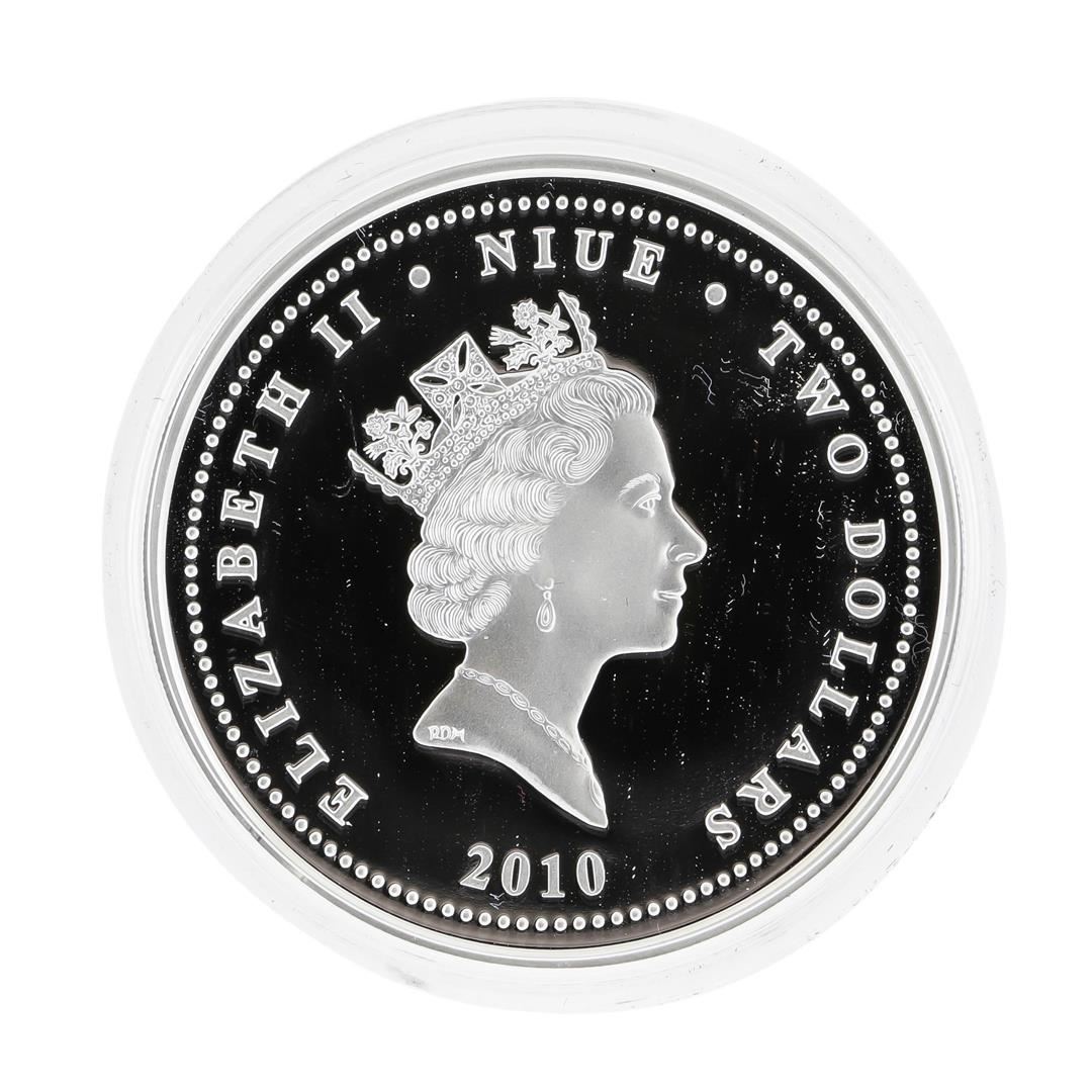 One 2010 $2 NIUE Giay Thong-Hanh Safe-Conduct Pass 1 oz. Silver Coin.