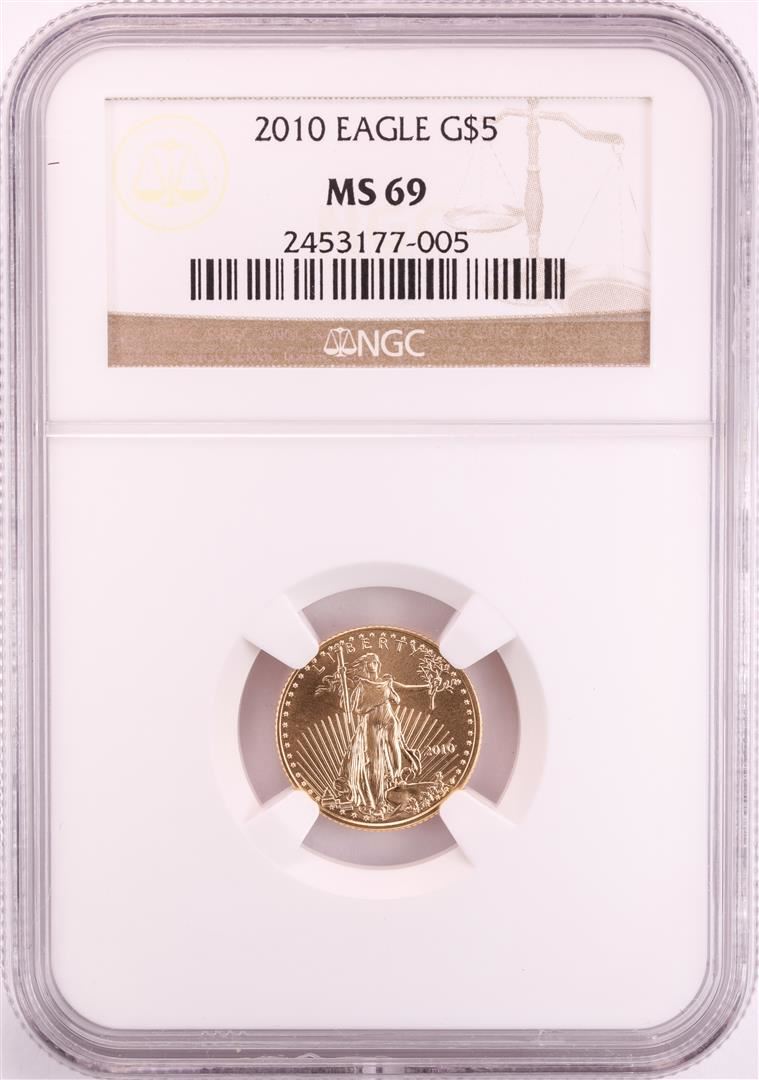 One 2010 $5 American Eagle Gold Coin NGC MS69. NGC Certified.