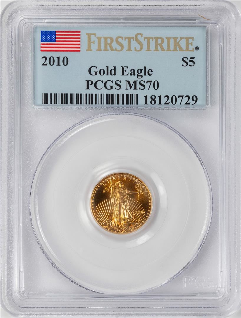 One 2010 $5 American Gold Eagle Coin PCGS MS70 First Strike. PCGS Graded.