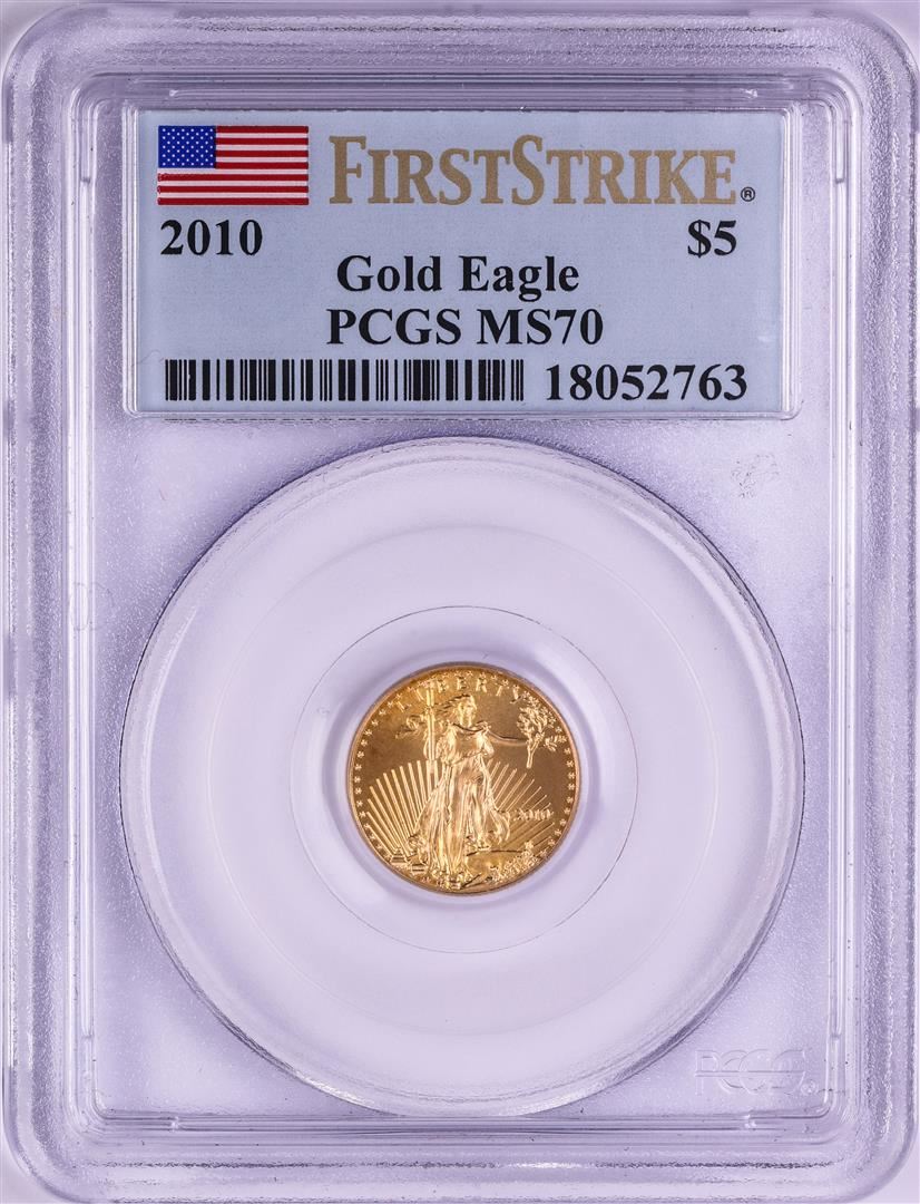 One 2010 $5 American Gold Eagle Coin PCGS MS70 First Strike. PCGS Graded.