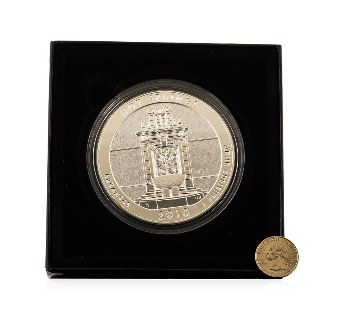 One 2010 America the Beautiful 5oz Silver Coin Hot Springs.