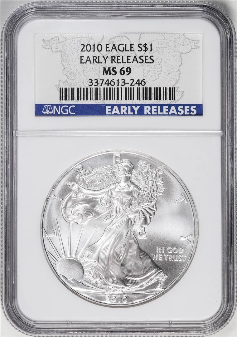 One 2010 American Silver Eagle Coin NGC MS69 Early Releases. NGC Certified.
