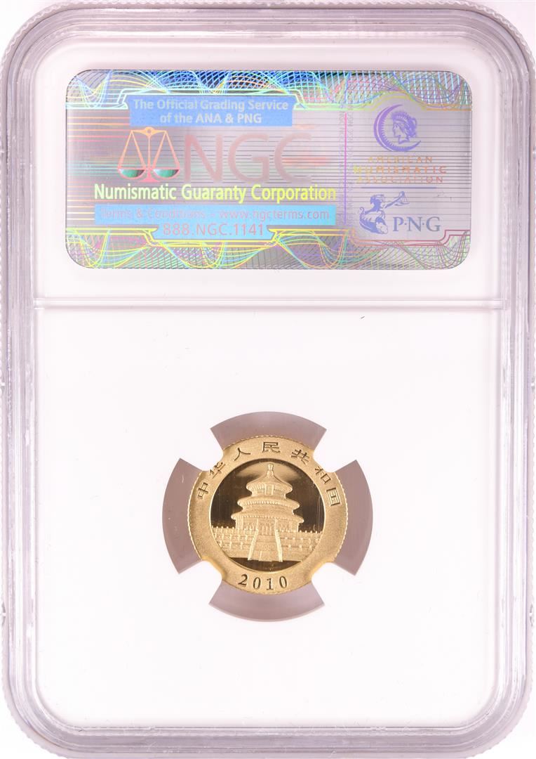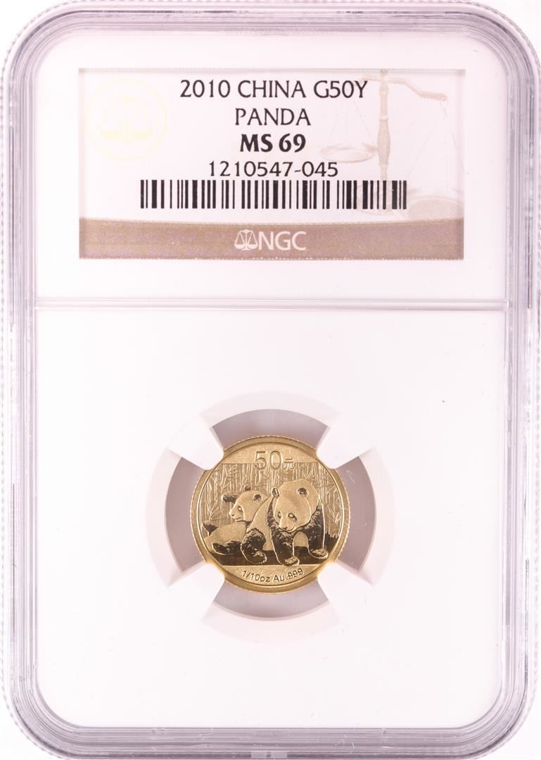 One 2010 China 50 Yuan 1/10 oz Gold Panda Coin NGC MS69. NGC Certified.