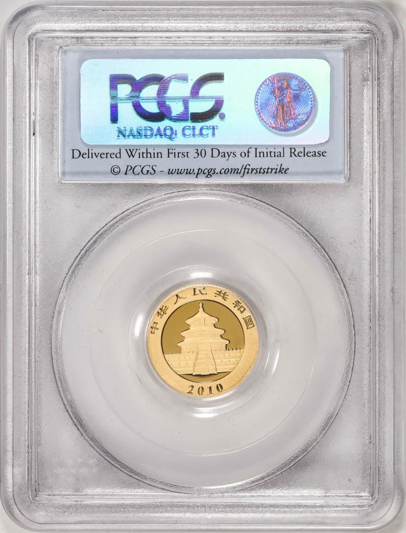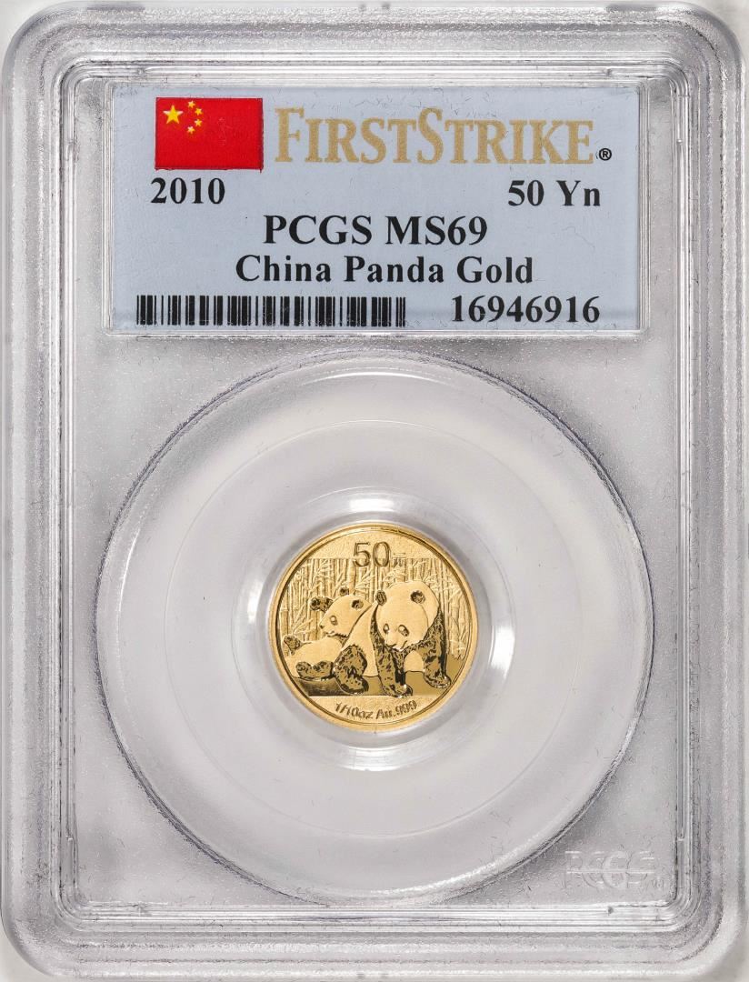 One 2010 China 50 Yuan Panda Gold Coin PCGS MS69 First Strike. PCGS Graded.