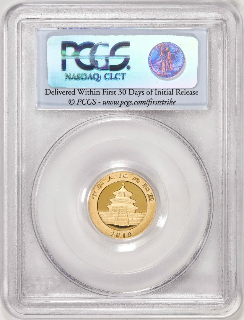 One 2010 China 50 Yuan Panda Gold Coin PCGS MS69 First Strike. PCGS Graded.