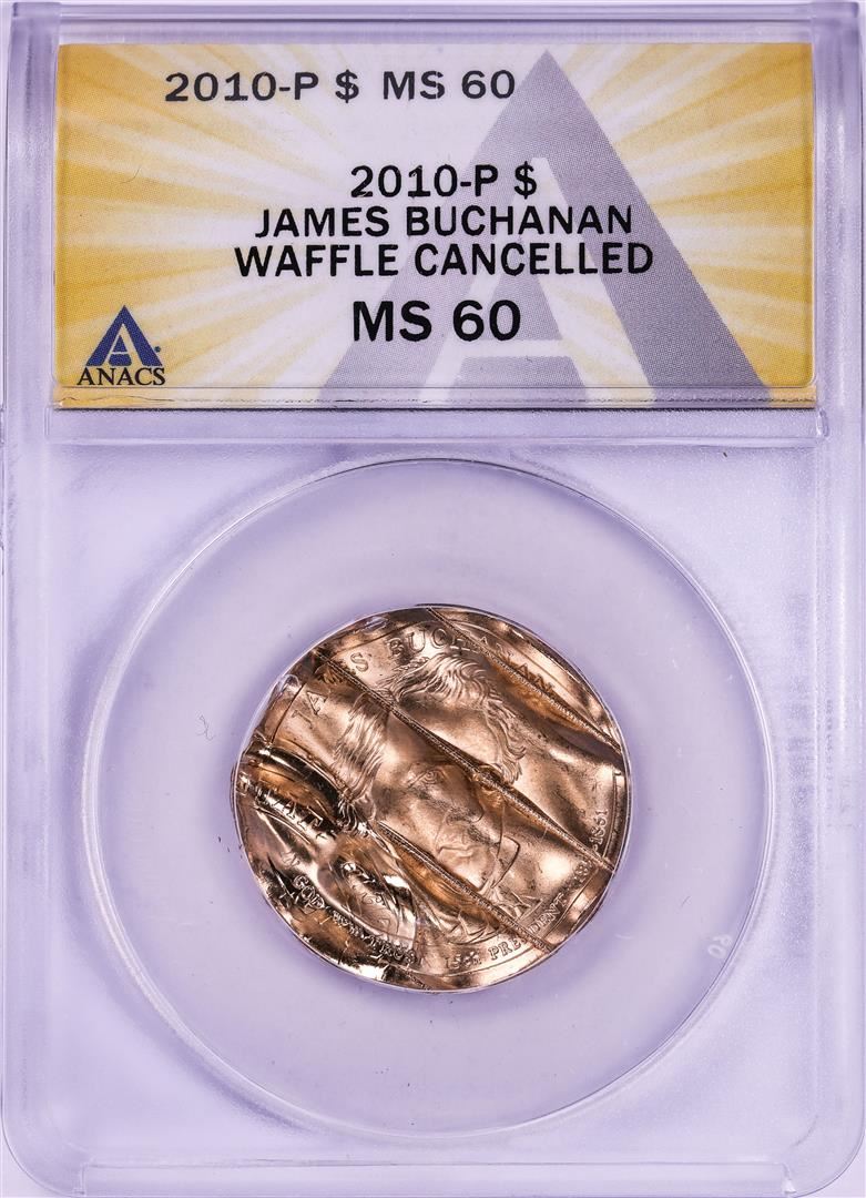 2010-P James Buchanan Presidential Dollar Waffle Cancelled Coin ANACS MS60