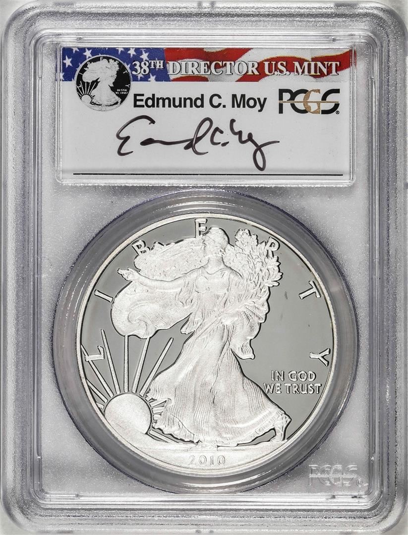 2010-W $1 Proof American Silver Eagle Coin PCGS PR69DCAM Edmund Moy Signature