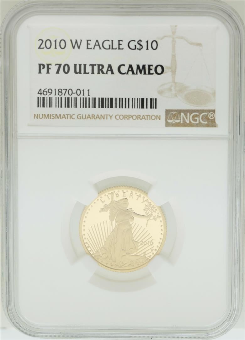 One 2010-W $10 American Gold Eagle Coin NGC PF70 Ultra Cameo. NGC Certified.
