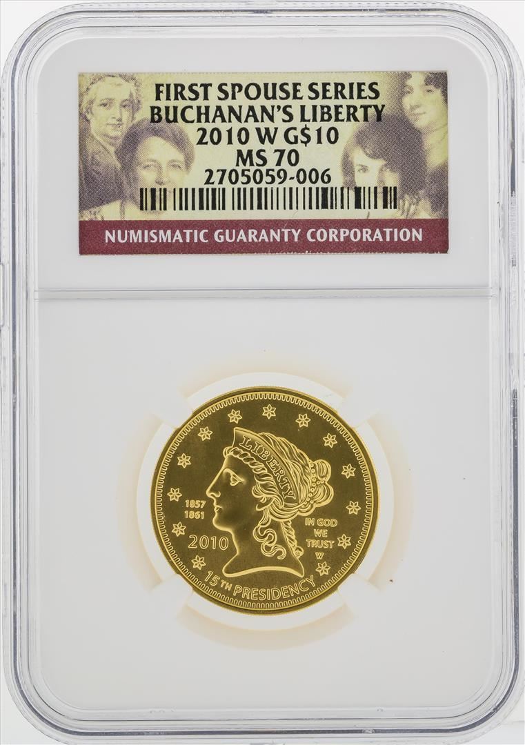 One 2010 W $10 First Spouse Series Buchanans Liberty Gold Coin NGC PF70 Ultra Cameo. NGC Certified.