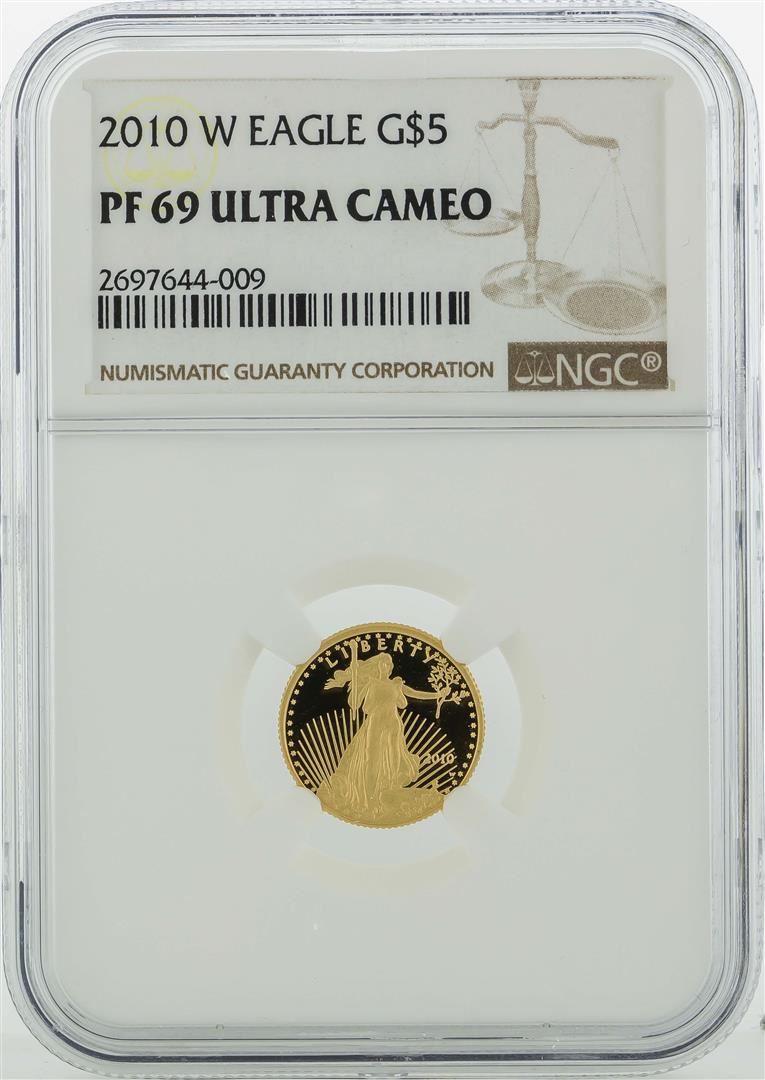 One 2010-W $5 American Gold Eagle Coin NGC PF69 Ultra Cameo. NGC Certified.