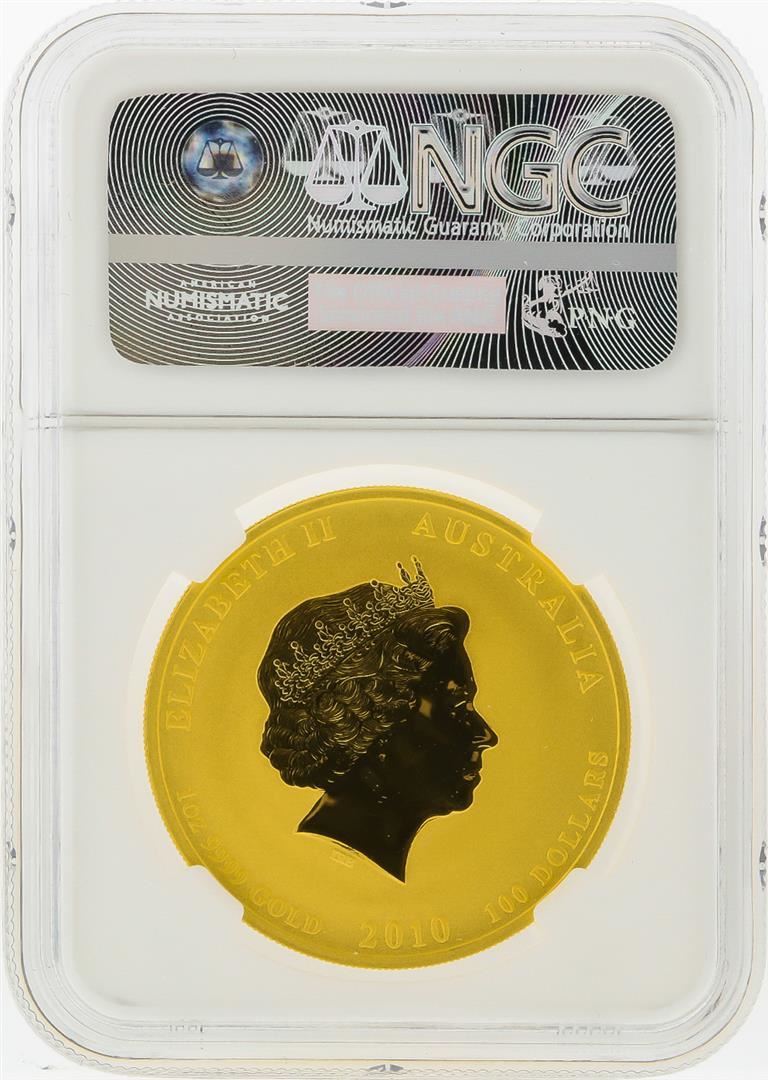 One 2010P $100 Australia Lunar Year of the Tiger Gold Coin NGC MS70. NGC Certified.