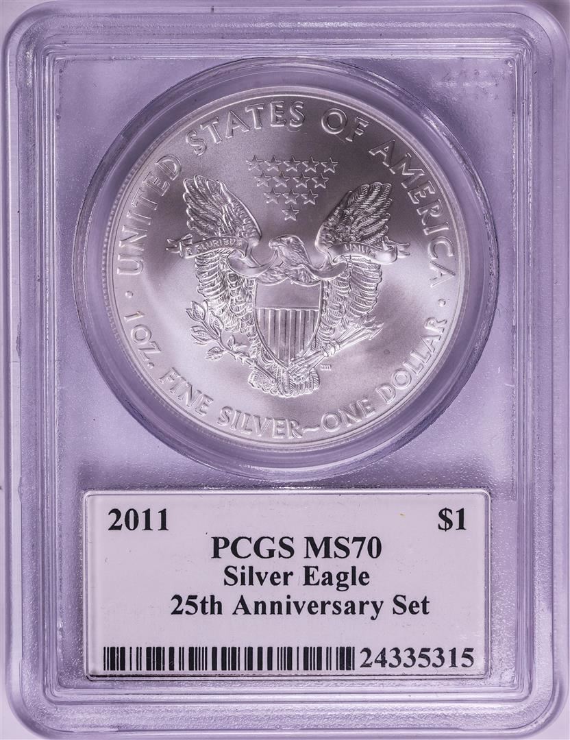 2011 $1 American Silver Eagle Coin PCGS MS70 Mercanti Signature