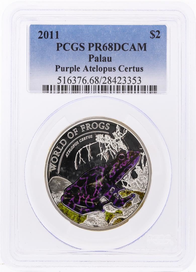 One 2011 $2 Republic of Palau Silver Coin PCGS PR68DCAM. PCGS Graded.
