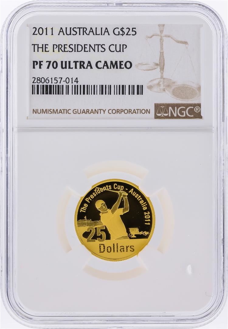 One 2011 $25 Australia The Presidents Cup Gold Coin NGC PF70 Ultra Cameo. NGC Certified.