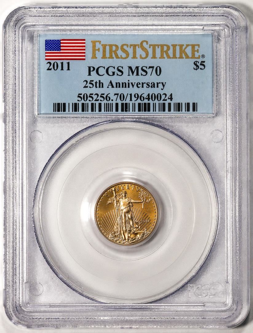 2011 $5 American Gold Eagle Coin PCGS MS70 First Strike 25th Anniversary