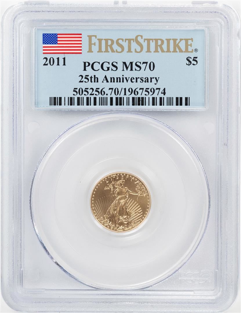 2011 $5 American Gold Eagle Coin PCGS MS70 First Strike