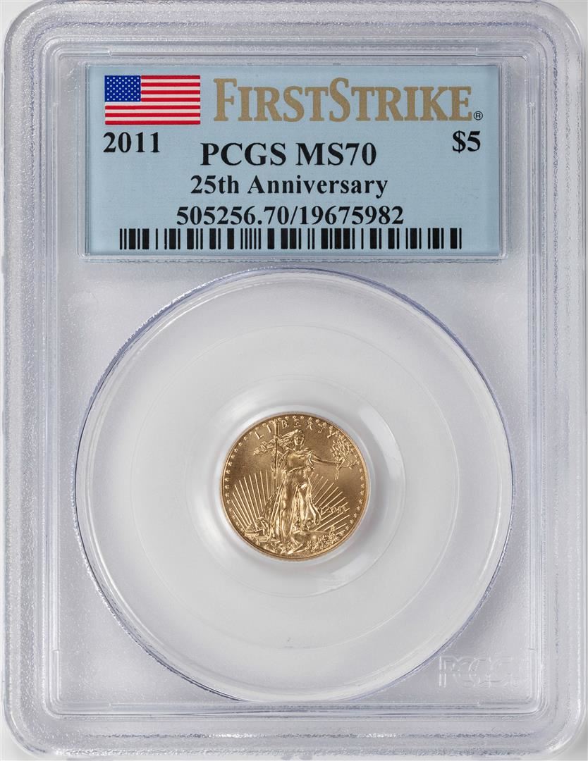 One 2011 $5 American Gold Eagle Coin PCGS MS70 First Strike. PCGS Graded.