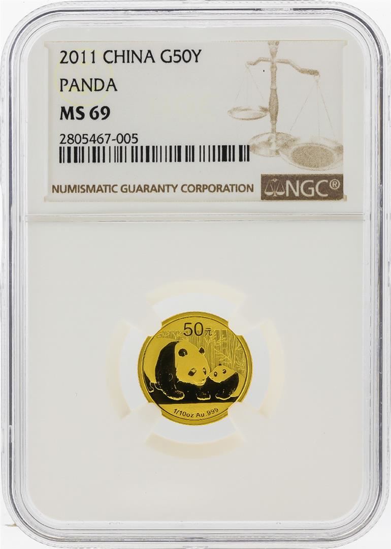 One 2011 50 Yuan China Gold Panda Coin NGC MS69. NGC Certified.