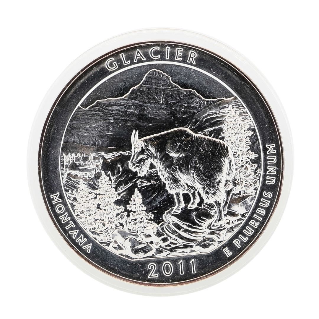 One 2011 5oz Silver ATB Glacier Wyoming Silver Coin.