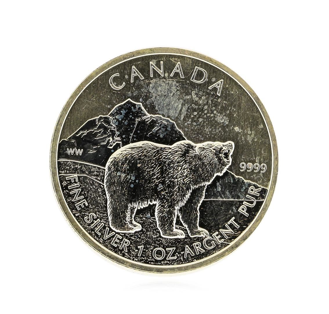 One 2011 Canada 1oz Silver Wildlife Series Grizzly Coin.