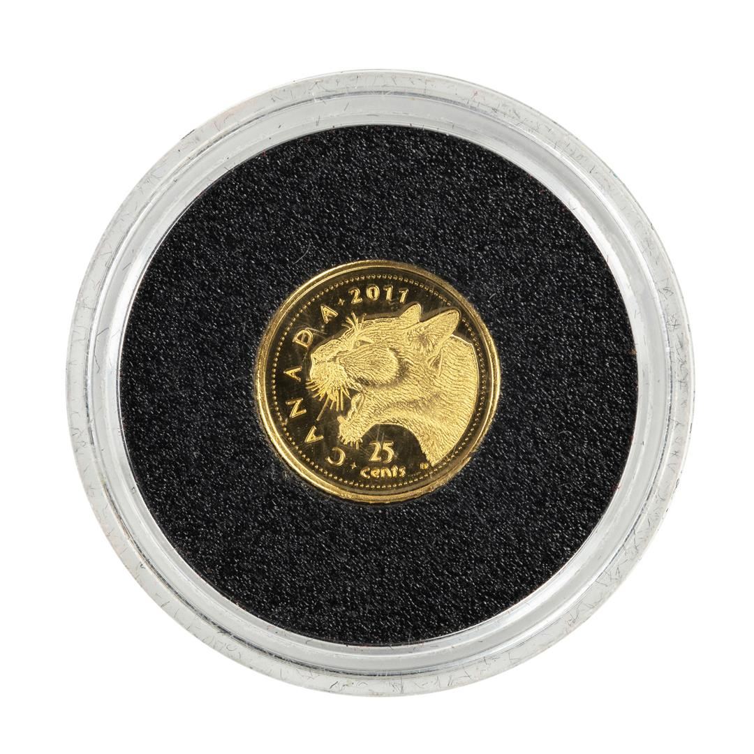 One 2011 Canada 25 Cents Cougar Gold Coin w/ Box & COA.