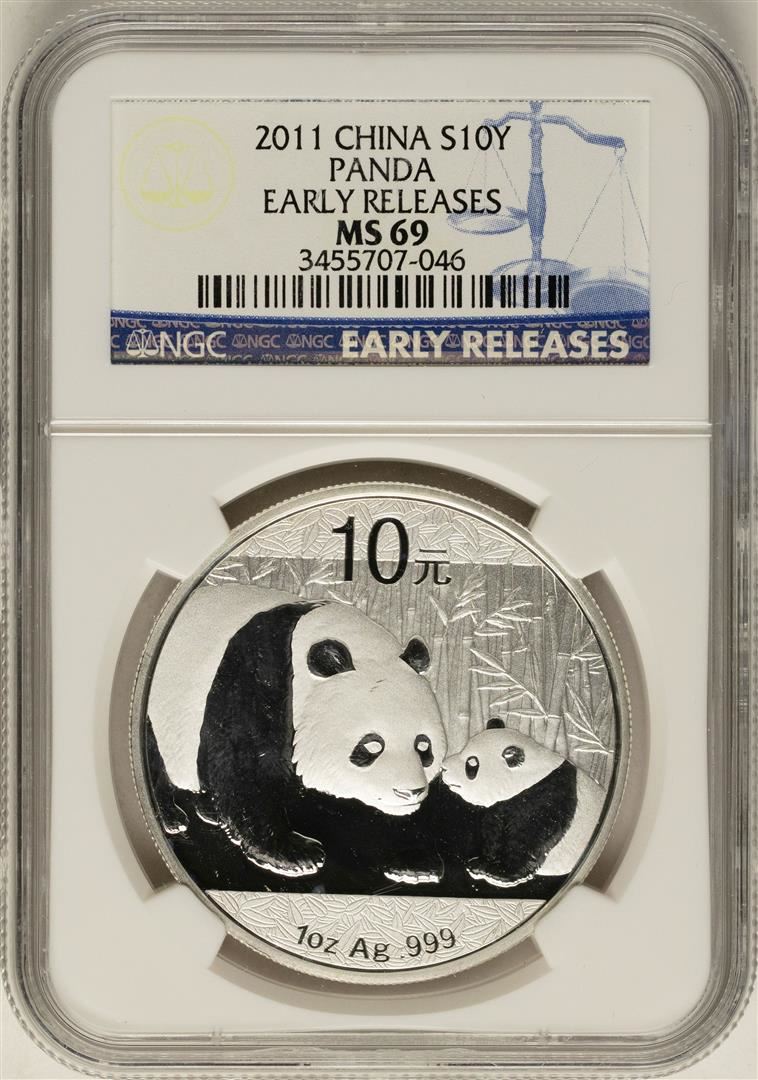 2011 China 10 Yuan Silver Panda Coin NGC MS69 Early Releases