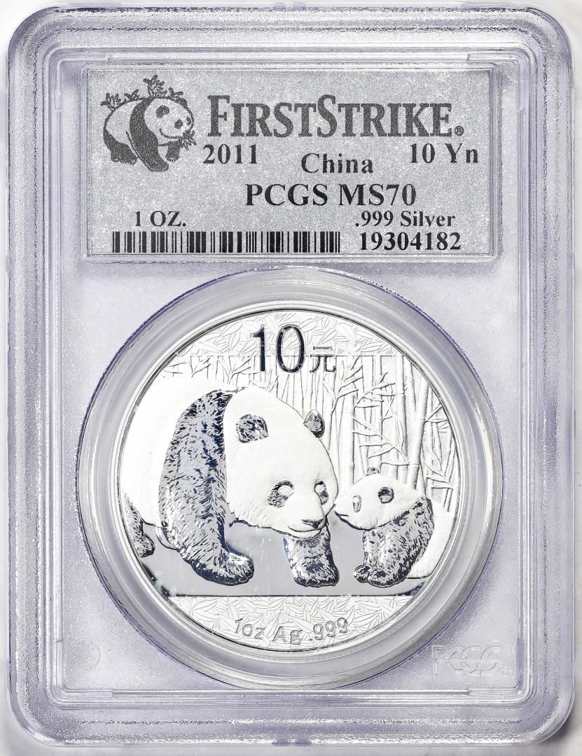 One 2011 China 10 Yuan Silver Panda Coin PCGS MS70 First Strike. PCGS Graded.