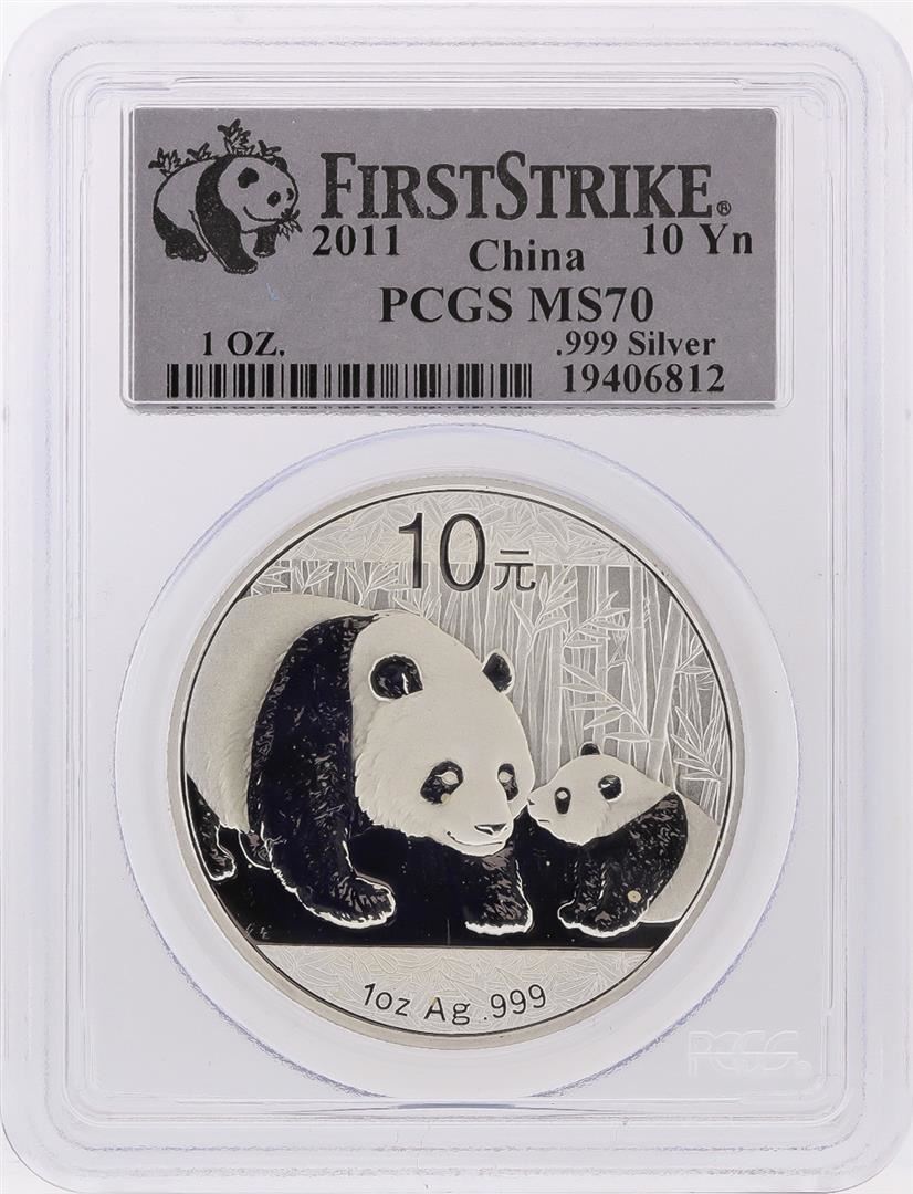2011 China Panda Silver Coin 10 Yuan PCGS First Strike MS70
