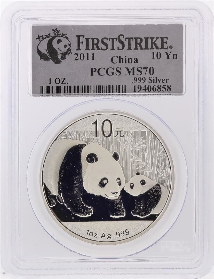 2011 China Panda Silver Coin 10 Yuan PCGS First Strike MS70