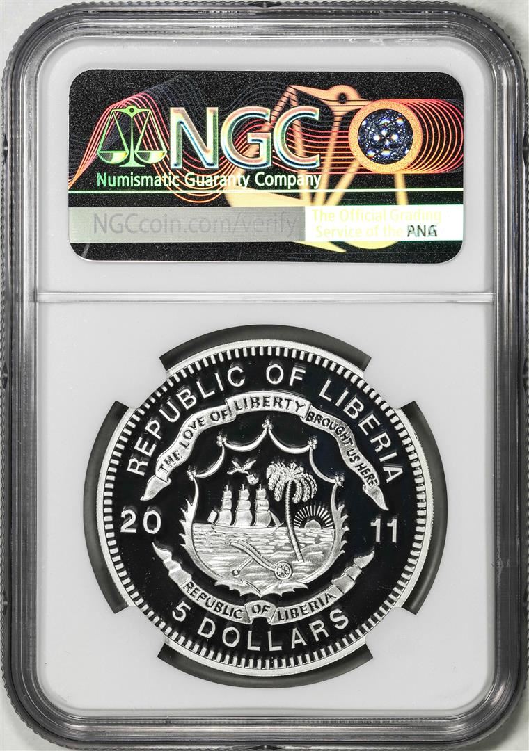 2011 Liberia $5 History of Railroads Flam Line Silver Coin NGC PF69 Ultra Cameo