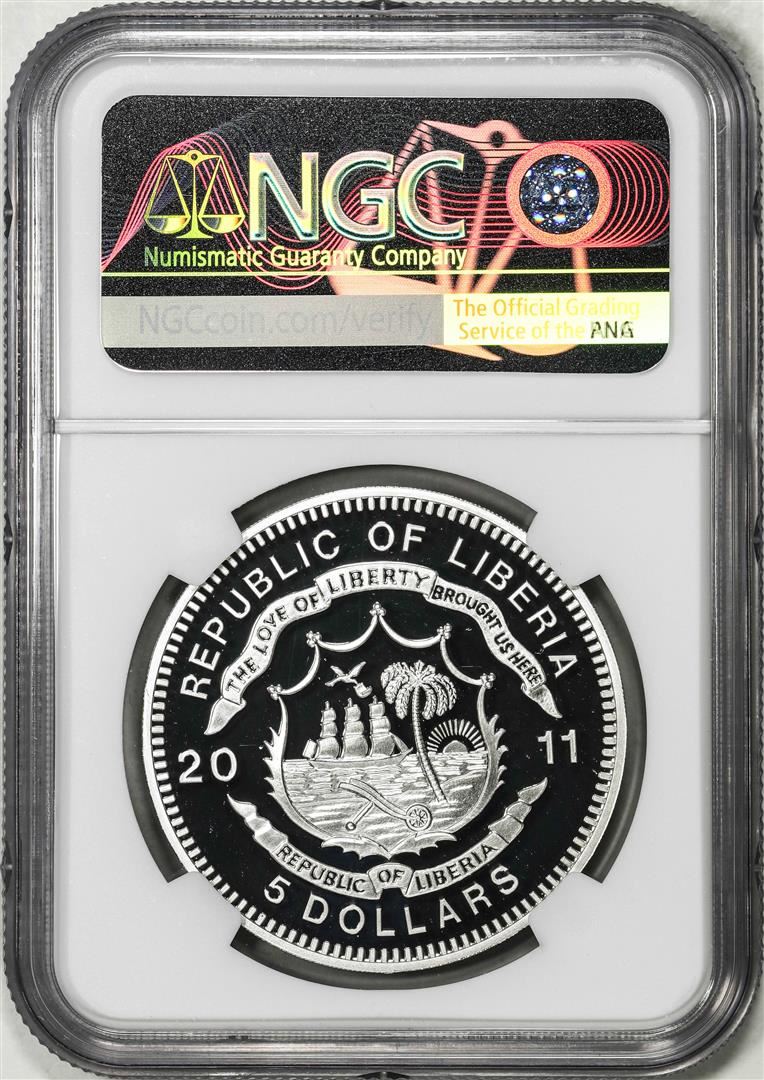 One 2011 Liberia $5 History of Railroads Mallard Proof Silver Coin NGC PF69 Ultra Cameo. NGC Certified.