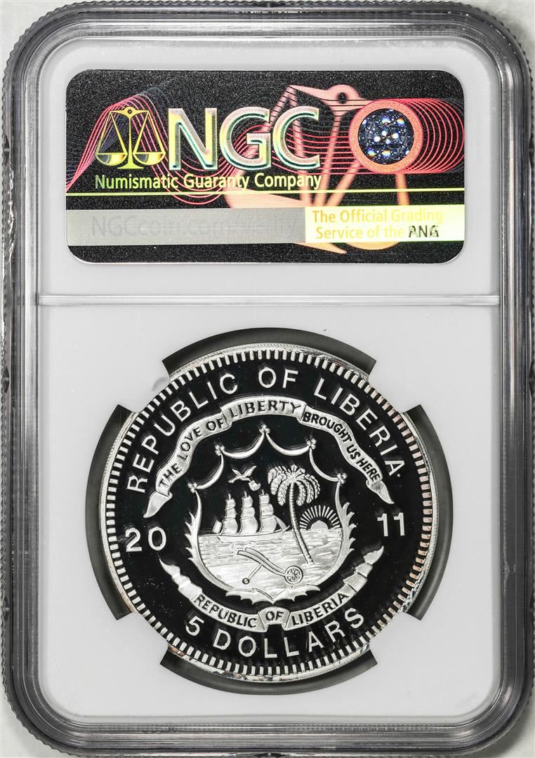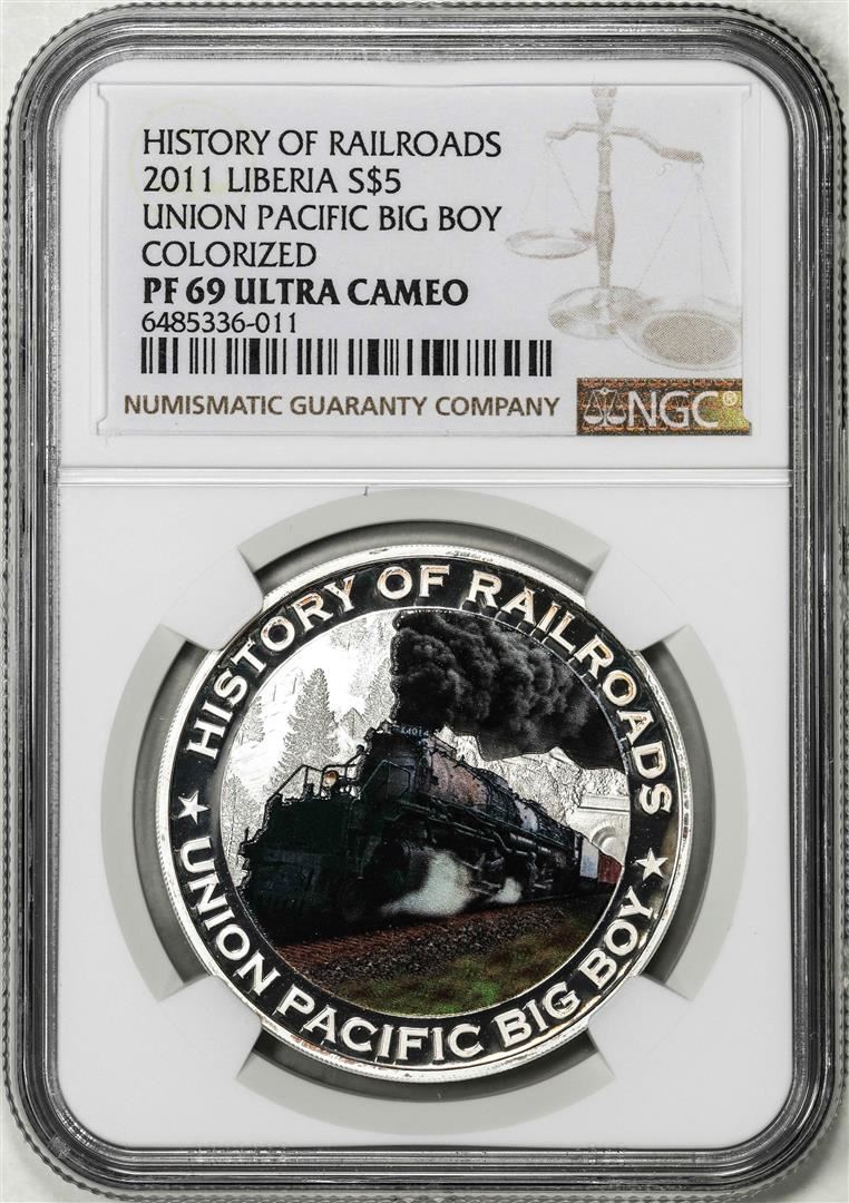 One 2011 Liberia $5 History of Railroads Union Pacific Big Boy Coin NGC PF69 Ultra Cameo. NGC Certified.