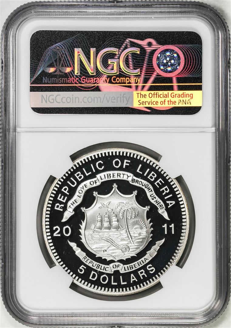 One 2011 Liberia $5 Proof China Railways Typsy History Silver Coin NGC PF69 Ultra Cameo. NGC Certified.