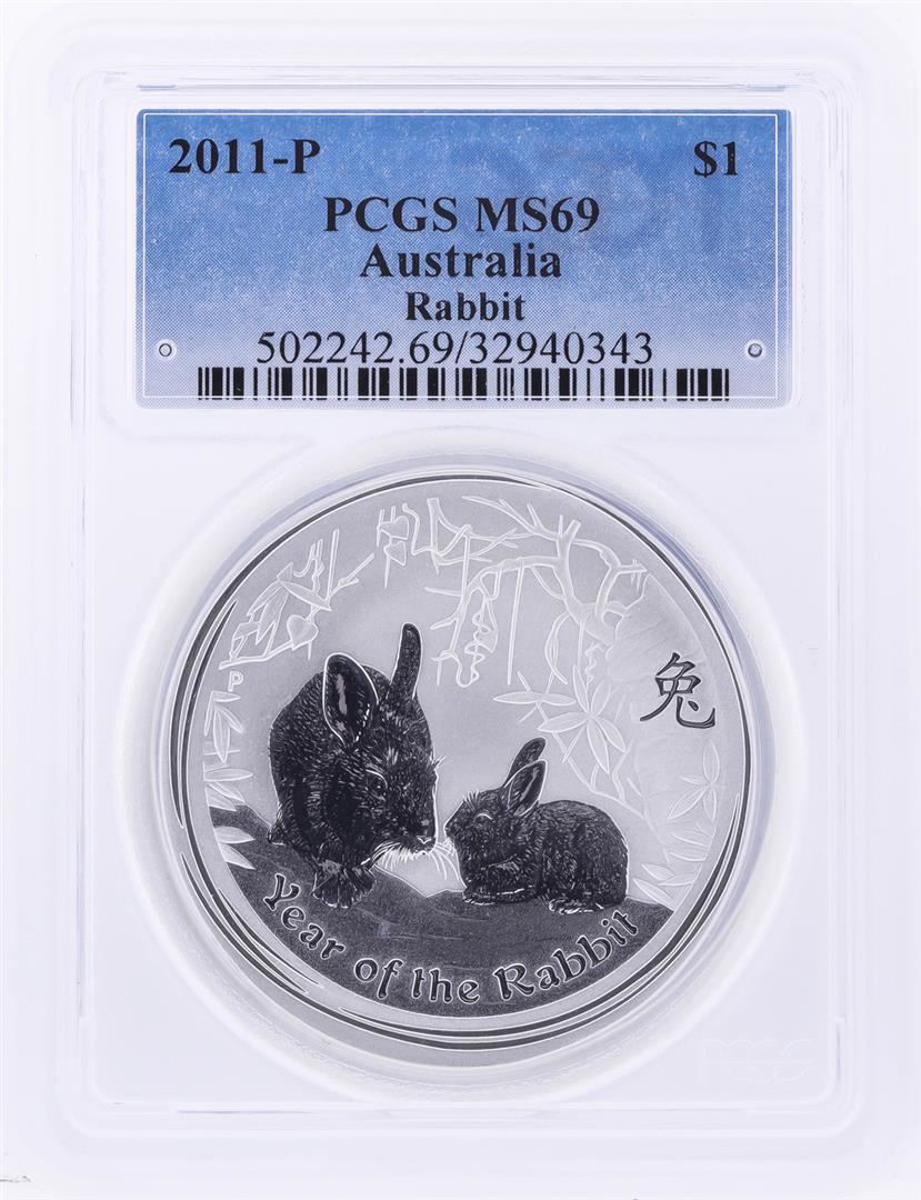 One 2011-P $1 Australia Year of the Rabbit Silver Coin PCGS MS69. PCGS Graded.