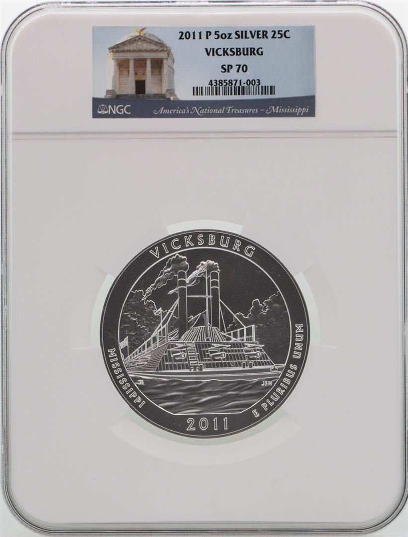 2011-P America the Beautiful Vicksburg 5 Ounce Silver Coin NGC SP70