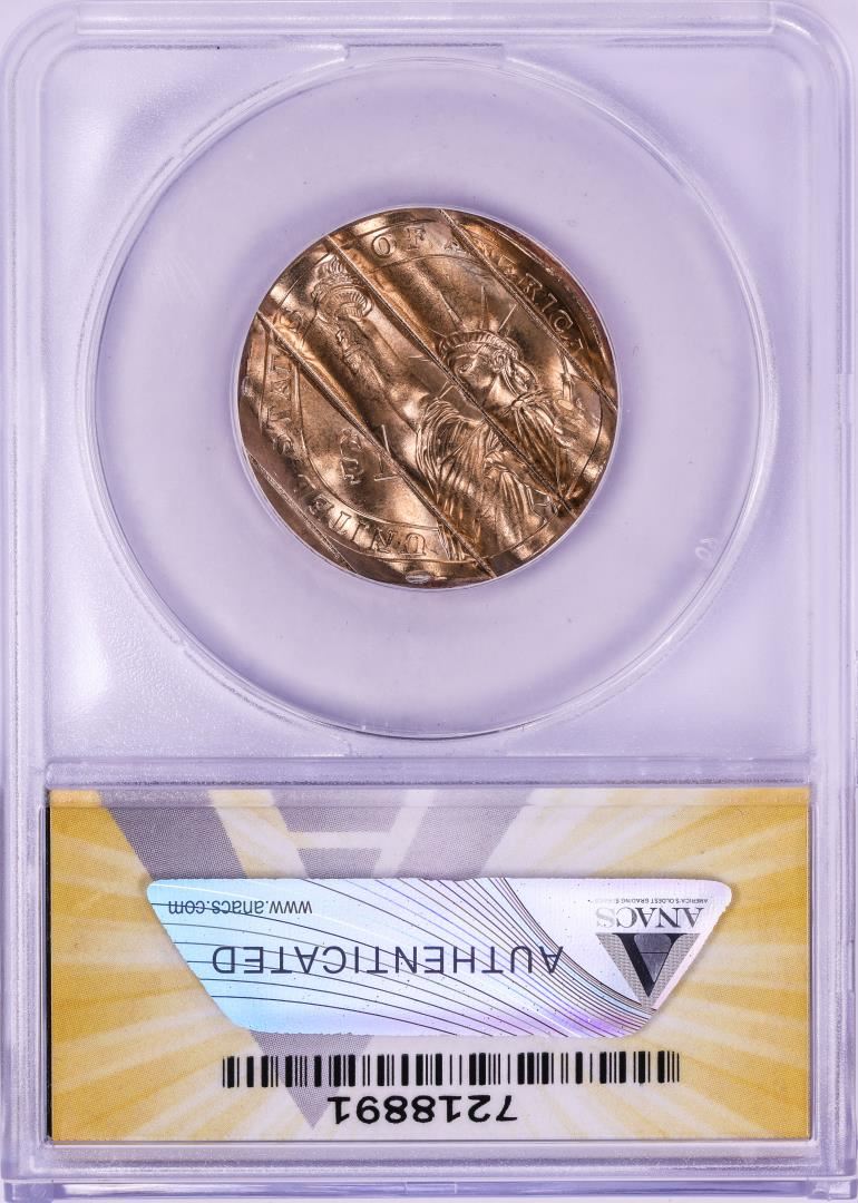 One 2011-P James Garfield Presidential Dollar Waffle Cancelled Coin ANACS MS60. ANACS Certified.