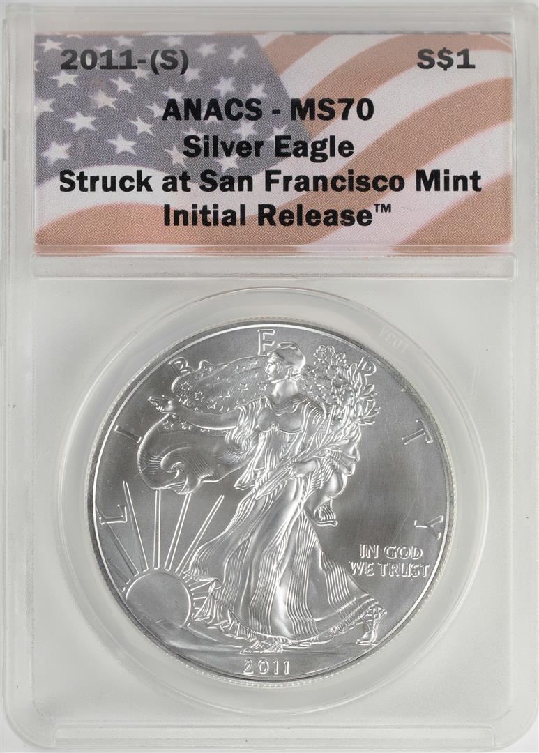 One 2011-S $1 American Silver Eagle Coin ANACS MS70. ANACS Certified.