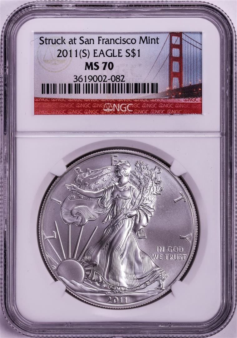 One 2011-(S) $1 American Silver Eagle Coin NGC MS70. NGC Certified.