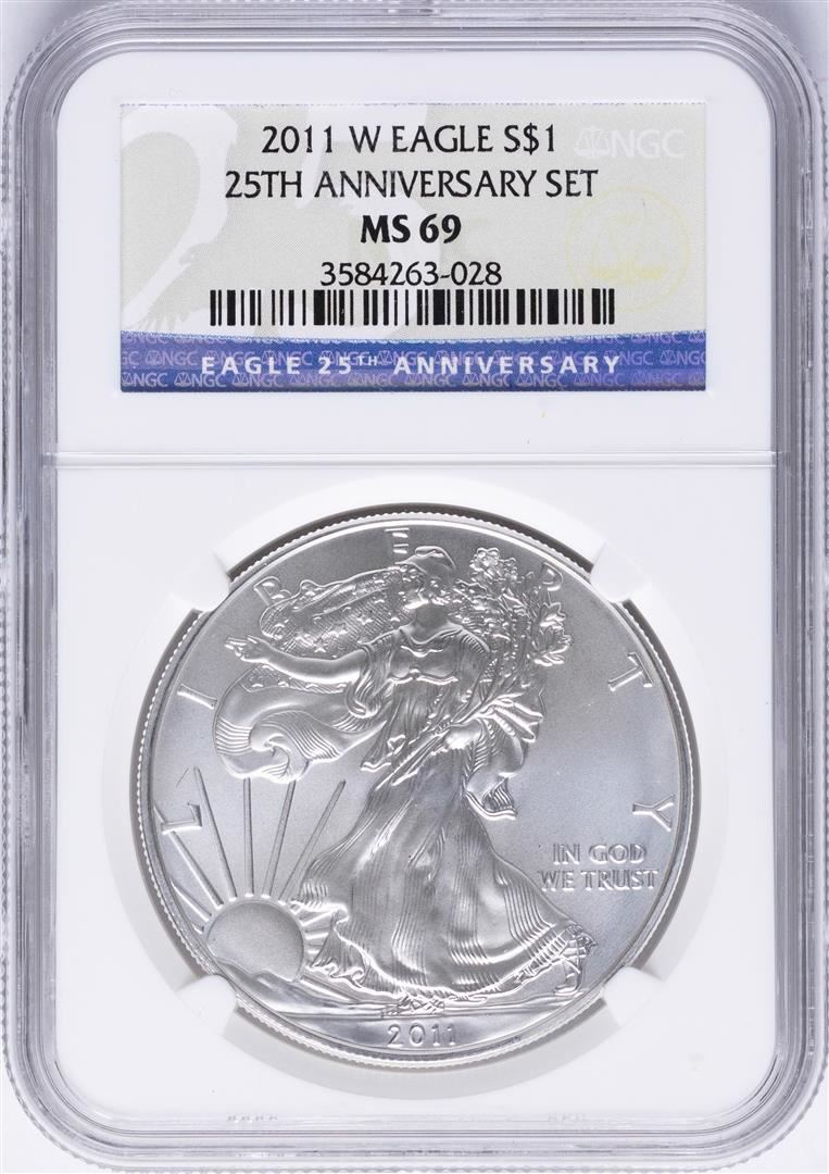 One 2011-W $1 American Silver Eagle Coin NGC MS69. NGC Certified.