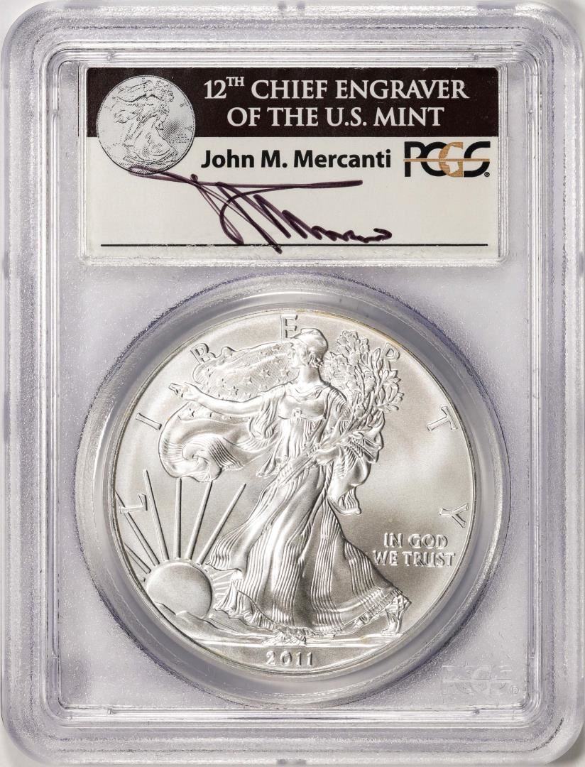 2011(W) $1 American Silver Eagle Coin PCGS MS70 Mercanti Signature West Point Mint